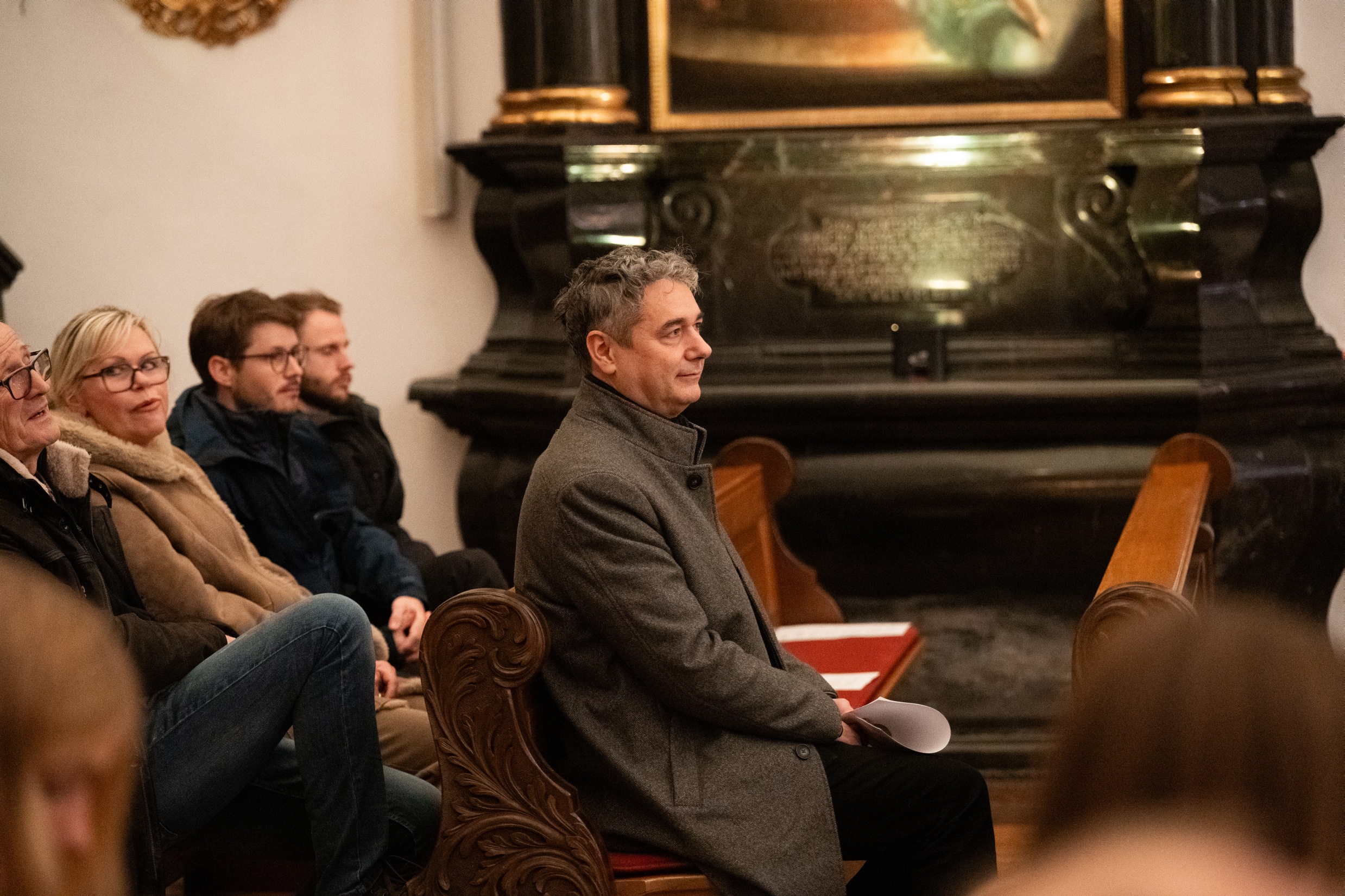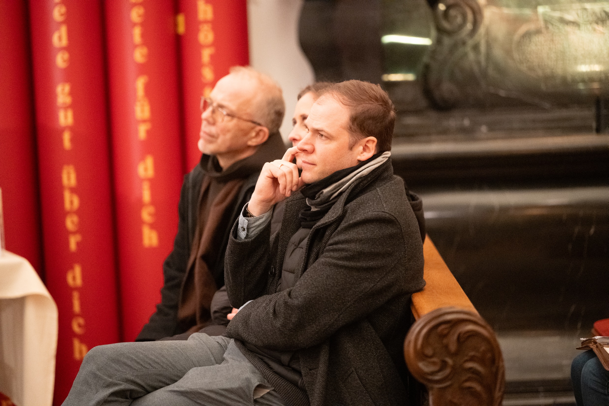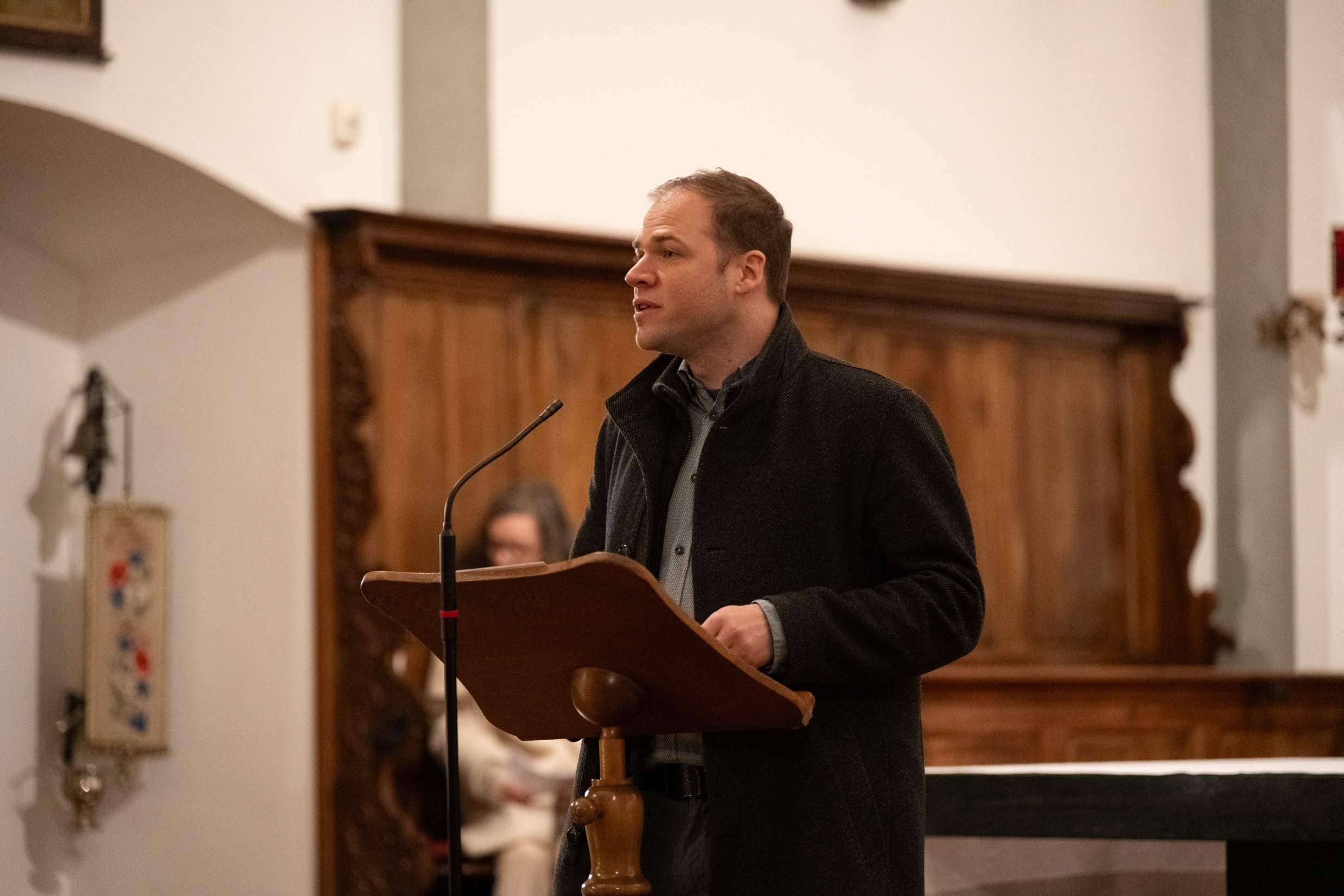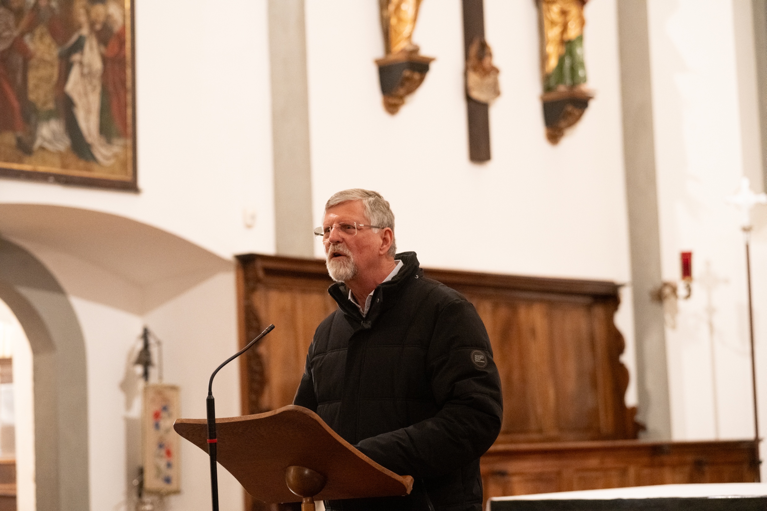 Für die Pfarrgemeinde Heilig Kreuz sprach Gemeindeleiter Thomas Folie, MA. „Eine Pfarrgemeinde lebt von Menschen, die Verantwortung übernehmen und sich konkret einbringen“, betonte Folie. Hauptamtliche Strukturen könnten das Engagement einer Pfarrgemeinde bzw. von konkreten Personen nicht ersetzen. Ohne freiwillige Mitarbeit und ohne tragfähige Interessensgruppen sei es langfristig nicht möglich, mehrere Kirchen und Liegenschaften sinnvoll zu betreiben und zu erhalten. Deshalb war eine wichtige Botschaft an diesem Abend: „Wir tragen gemeinsam die Verantwortung für offene Kirchen.“