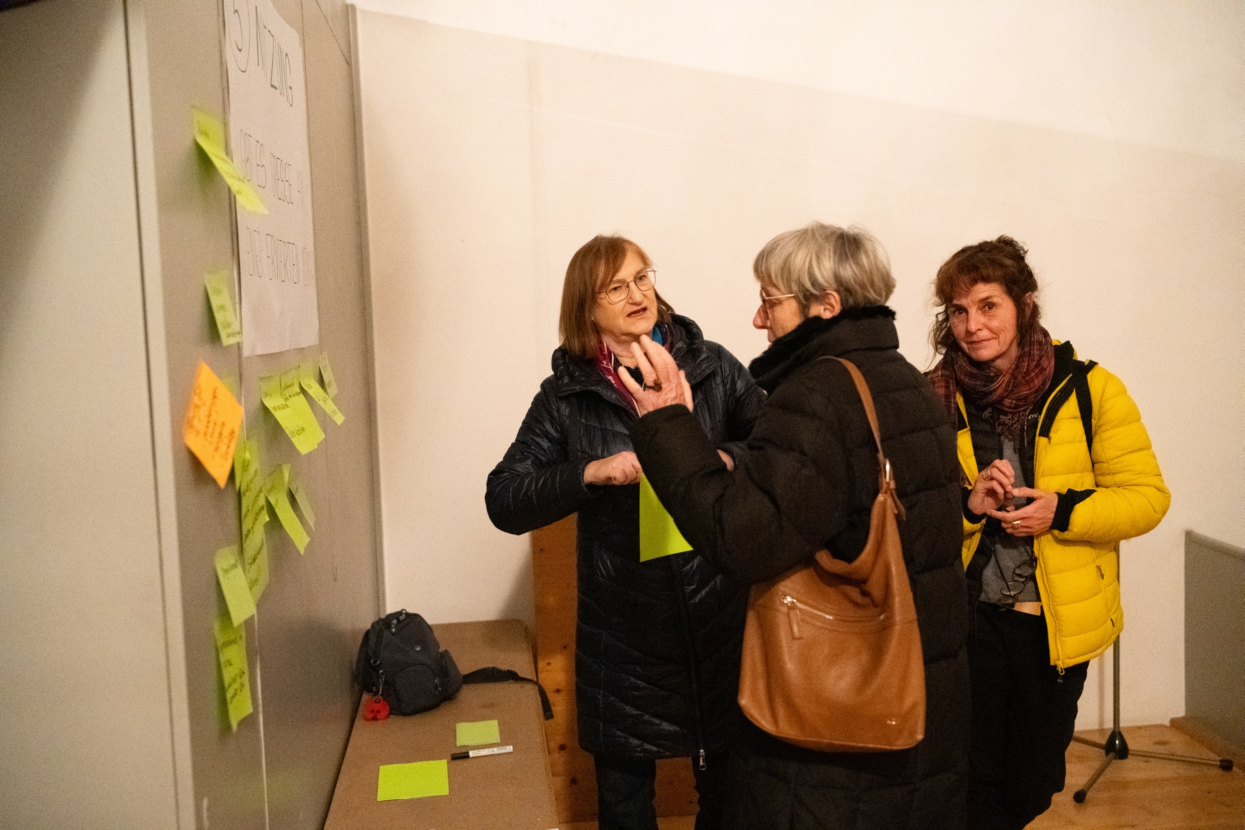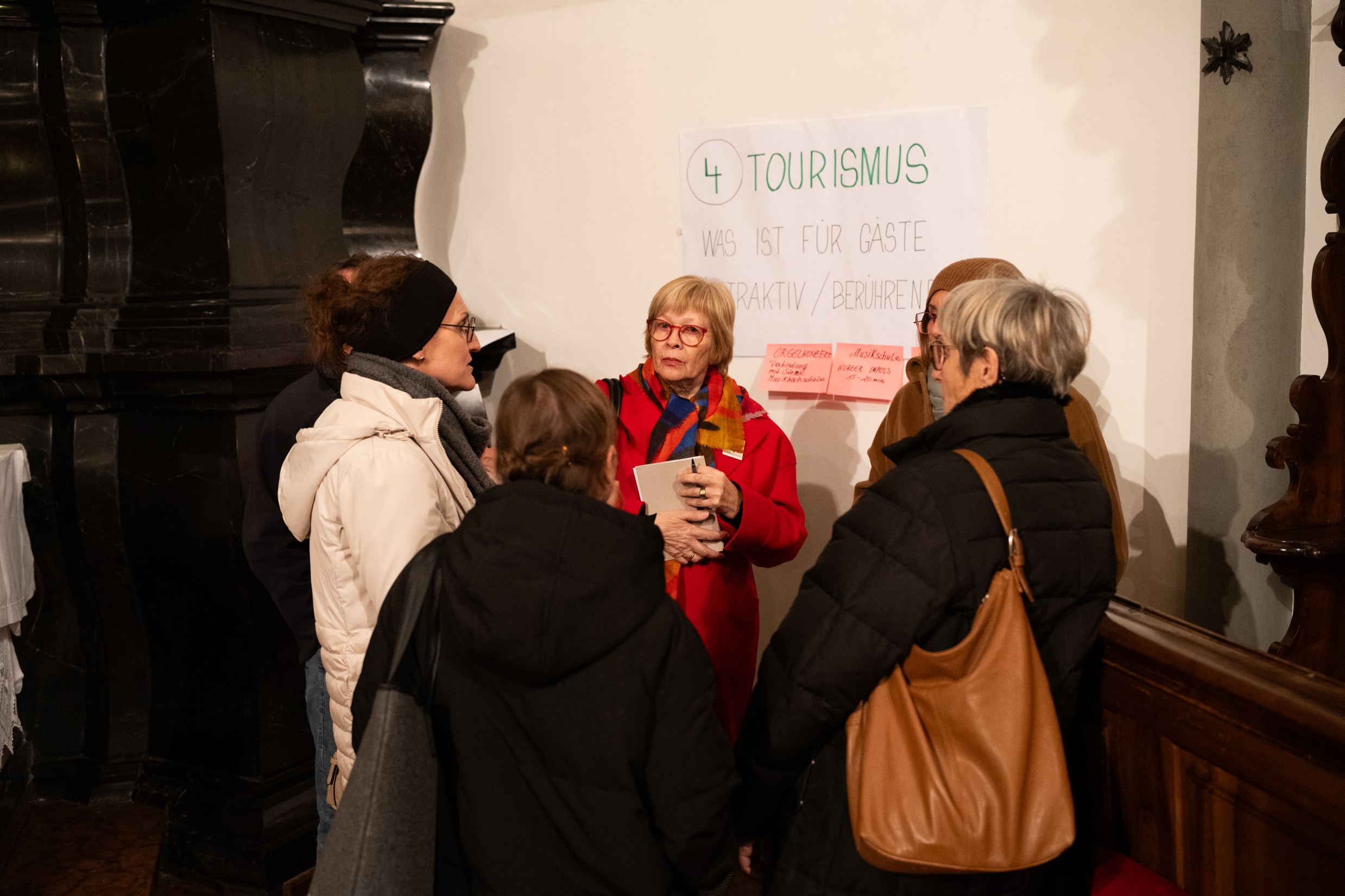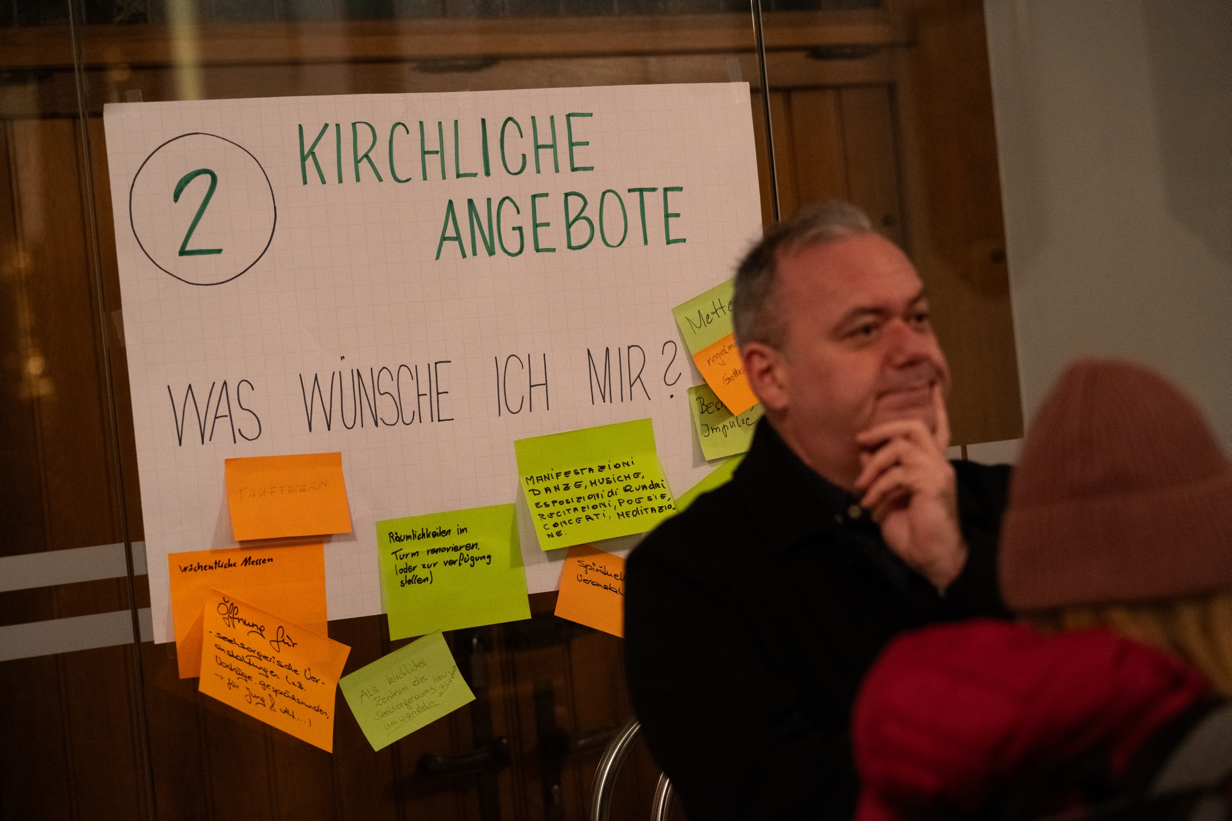 Ein zentrales Element des Abends waren die Themenecken im Kirchenraum. Dort konnten sich die Teilnehmenden informieren, diskutieren und eigene Ideen einbringen. Dieses Beteiligungsformat wurde intensiv genutzt. Konkret meldeten sich im Laufe des Abends zehn ehrenamtliche Personen, die bereit sind, künftig in Bereichen wie Reinigung, Technik, Hausmeistertätigkeiten und Pflege mitzuarbeiten. Zudem signalisierten mindestens vier Institutionen Interesse an möglichen Kooperationen. Auch alternative Finanzierungsideen wurden eingebracht, wenngleich noch ohne konkrete Zusagen.
