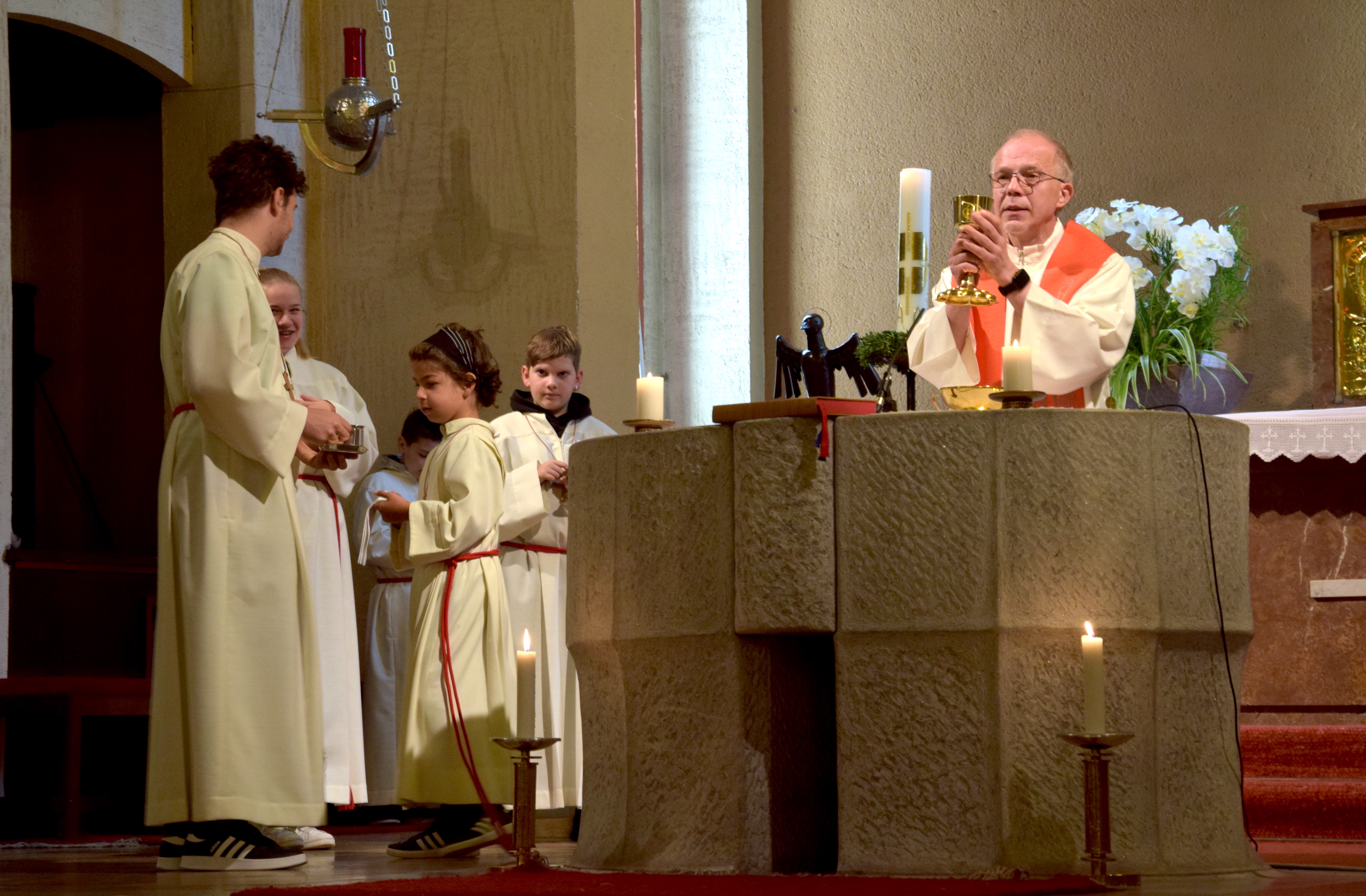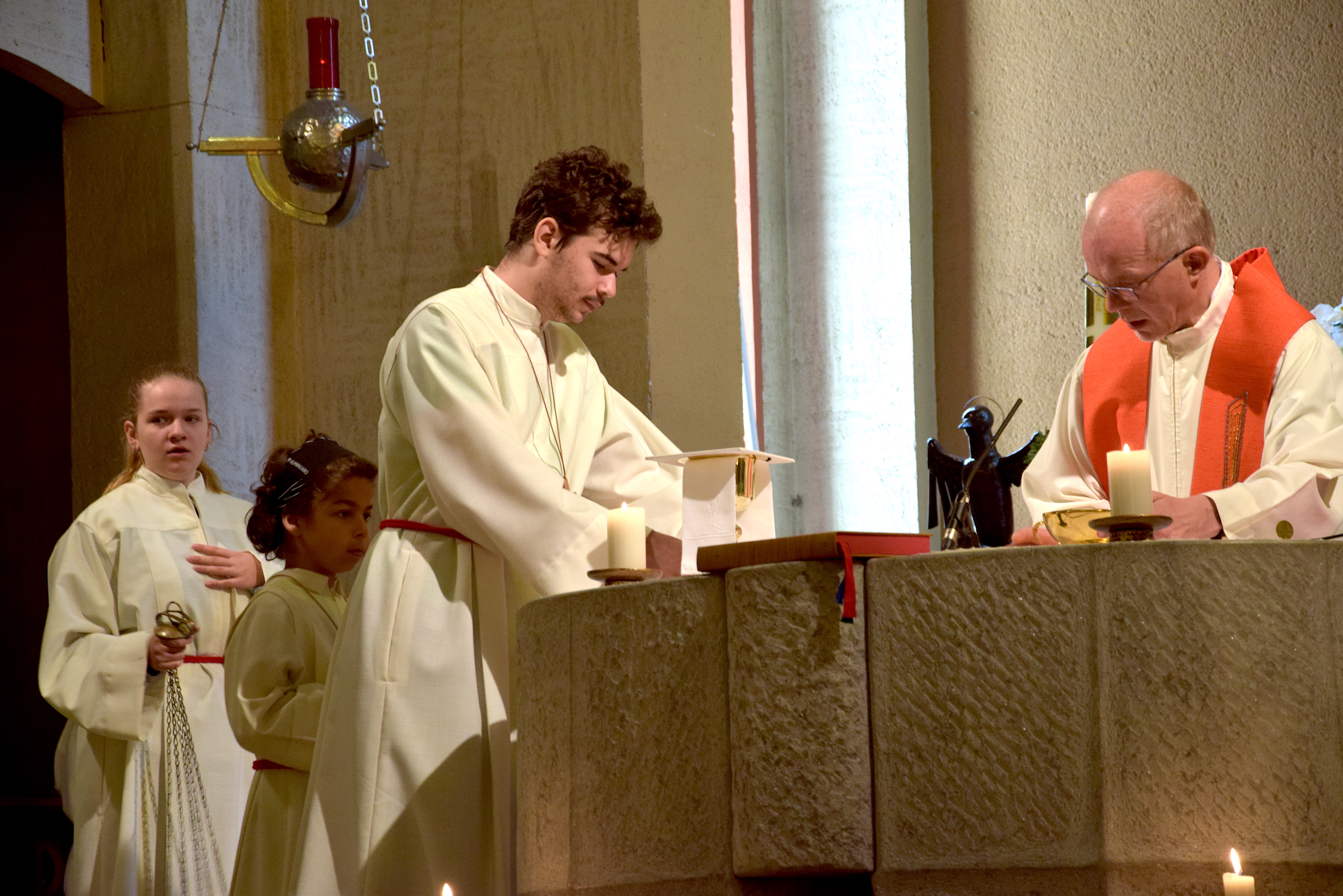 Am Vorabend zum Pfingstsonntag stand eine eineinhalbstündige Auffrischungsprobe auf dem Programm. Instrumental begleitet hatten den Chor Anna Konzett (Cello), Andrea Schuler (Querflöte), Julia Walch (Violine) und Margarita Nestsiaruk (Orgel). „Der Projektchor verlieh der Messfeier einen besonders feierlichen Charakter", stellte der Pastoralleiter des Seelsorgeraumes Bludenz und Gemeindeleiter der Pfarre Heilig Kreuz, Thomas Folie, dankbar fest. Gesanglich war in die Liturgie, die Pater Guido Kobiec geleitet hatte, aber auch das Volk mit dem Eröffnungs-, Gabenbereitungs- und Schlusslied eingebunden.