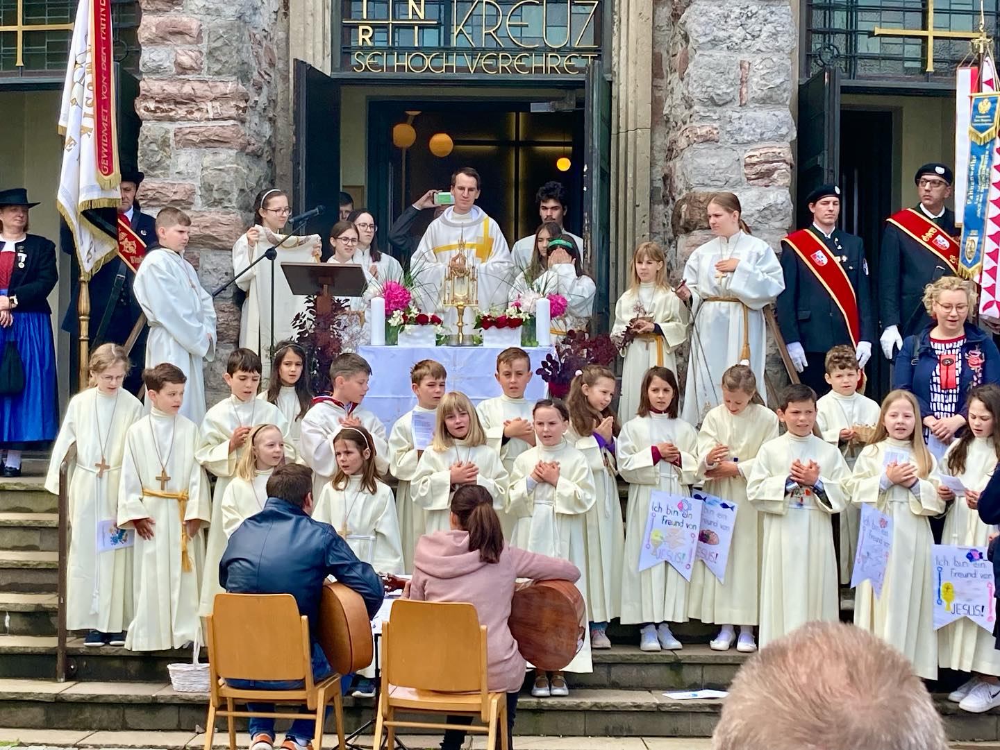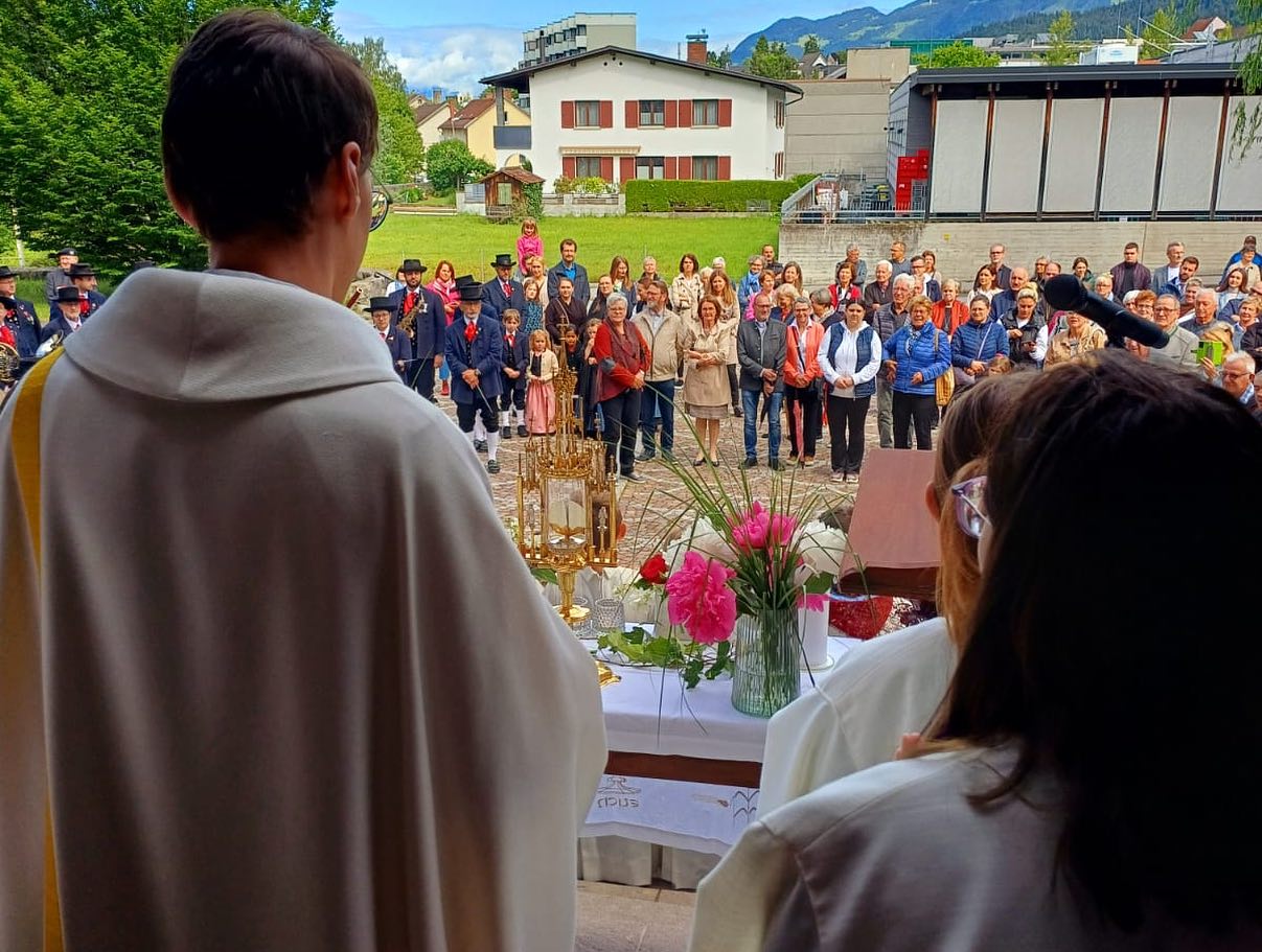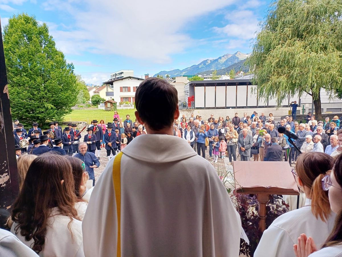Festmesse mit der Stadtmusik Bludenz und einem Altar am Kirchplatz Hl. Kreuzkirche.