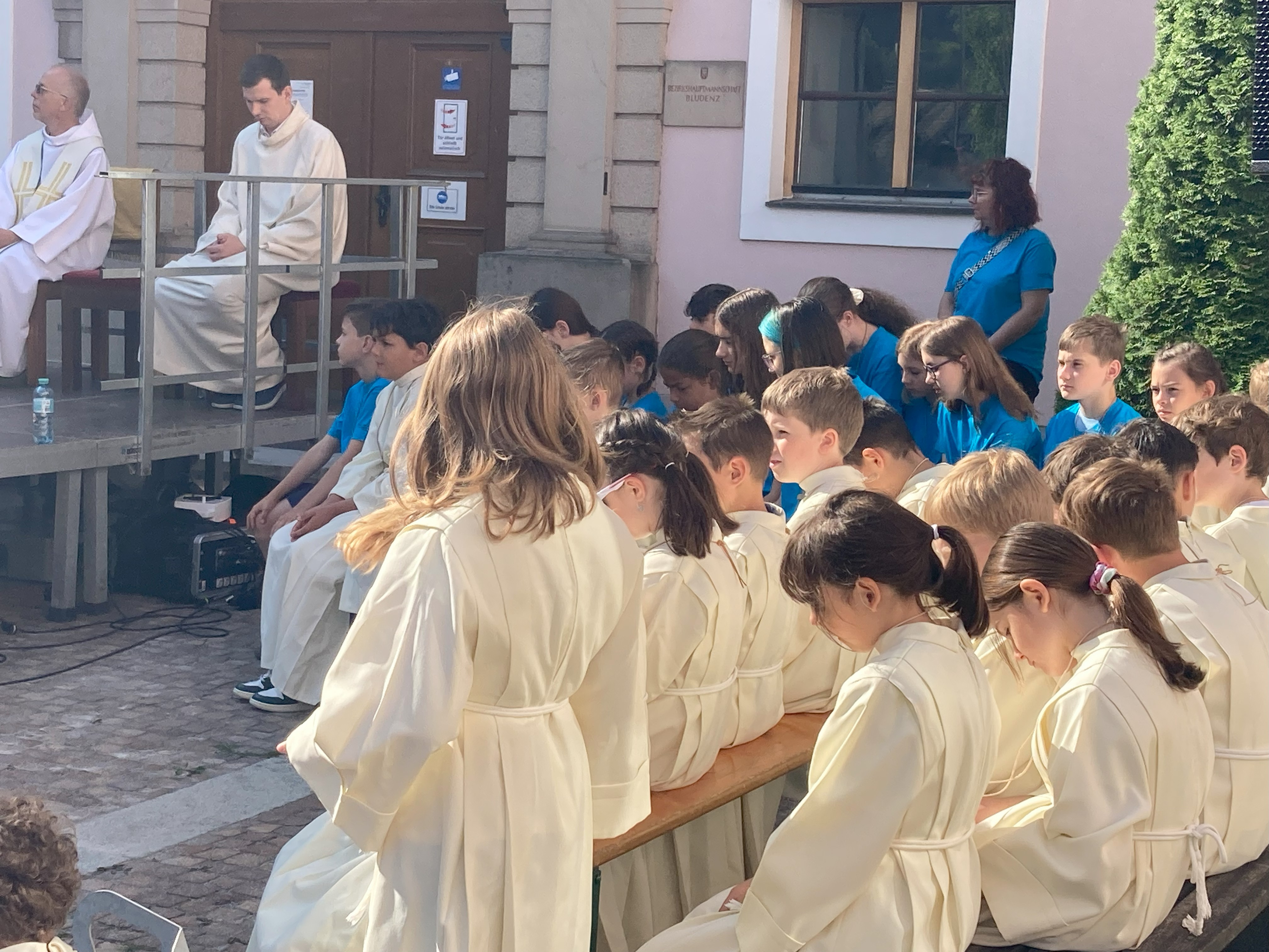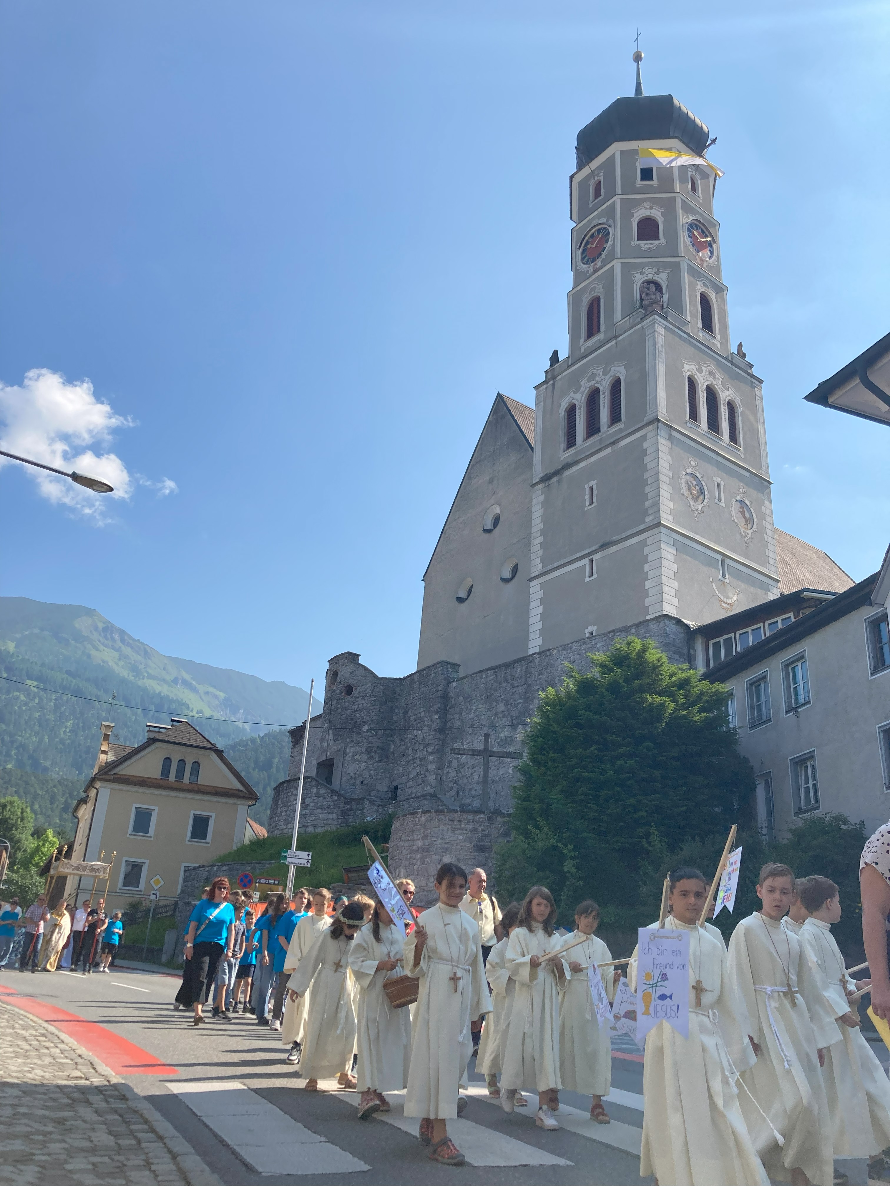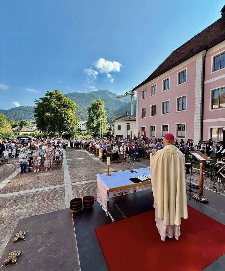 An Fronleichnam, dem 19. Juni 2025, luden die Stadtpfarren Hl. Kreuz und Herz Mariae Bludenz sowie das Franziskanerfestteam zum stimmungsvollen „Fest für Bludenz“ mit Diözesanbischof Benno Elbs, Pfarrmoderator Pater Guido und den Pfarrgemeindeleitern Thomas Folie, Sabrina Wachter und Mladen Milić ein. Die Stadtmusik Bludenz unter der Leitung von Kapellmeister Klaus Melmer sowie die Kinderchöre „CantaKids“ und „CantaJuniors“ gestalteten die Festmesse am Vorplatz von Schloss Gayenhofen (Bezirkshauptmannschaft Bludenz) musikalisch.