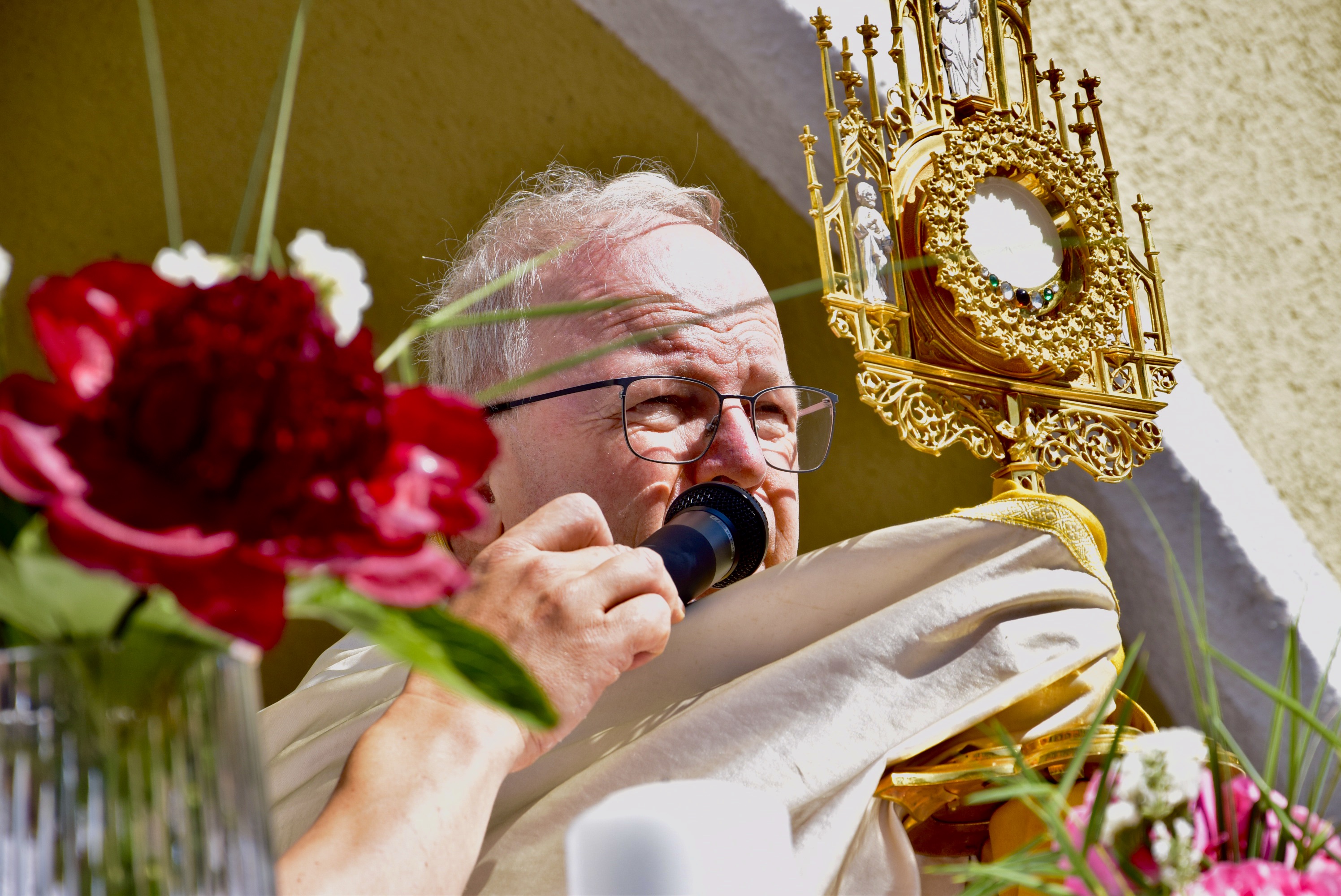 In seiner Predigt griff Bischof Benno Elbs die Tageslesung „Ich habe vom Herrn empfangen, was ich euch dann überliefert habe. (1 Kor 11,23)“ auf und betonte: „Empfangen und Weitergeben ist ein Grundprinzip unseres Lebens. Das ist auch der Rhythmus des Glaubens. Der Glaube ist ein Geschenk, das uns unsere Vorfahren überliefert haben und das wir – hoffentlich – an die nächsten Generationen weitergeben können. Wichtig in dieser Kette der Weitergabe ist die Erinnerung. An Fronleichnam feiern wir in der Eucharistie diese Erinnerung an Jesus Christus selbst.“