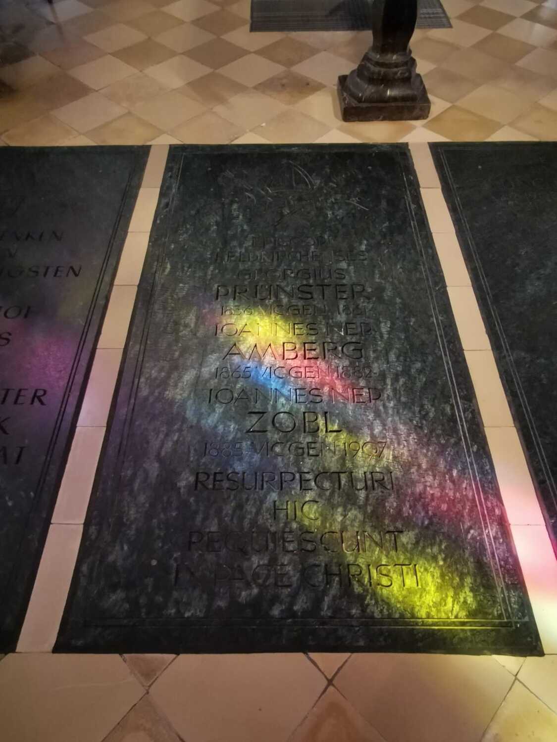 In front of Mary’s altar are three stone slabs set in the ground. These are the bishop’s crypt.
