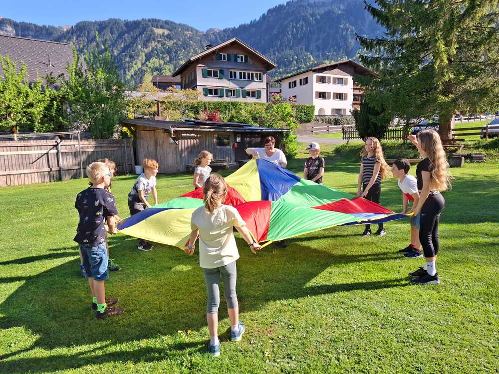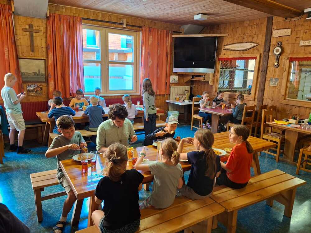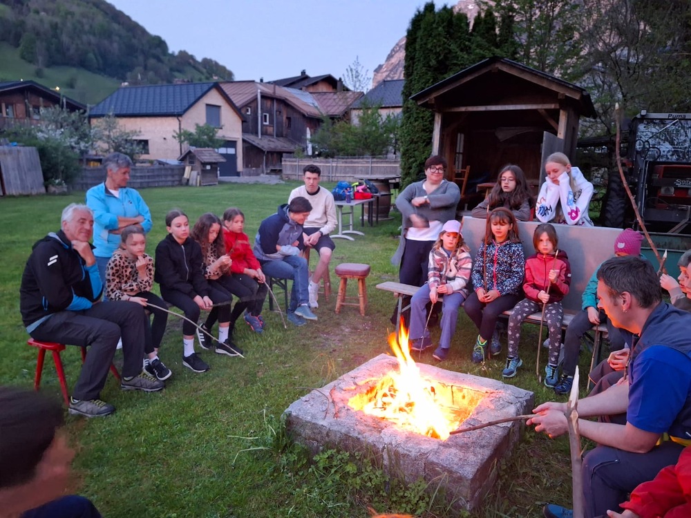 Dort erwartete Spiel, Gebet, Sport, tolle Natur und gutes Essen die fromme Rasselbande. Die Umgebung lud zu einer kleinen Wanderung zu einem Maisäß ein, die eine traumhafte Landschaft bot und manche der Minis an konditionelle Grenzen stoßen ließ.