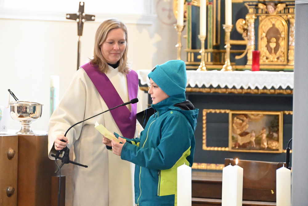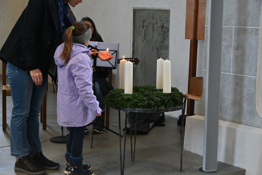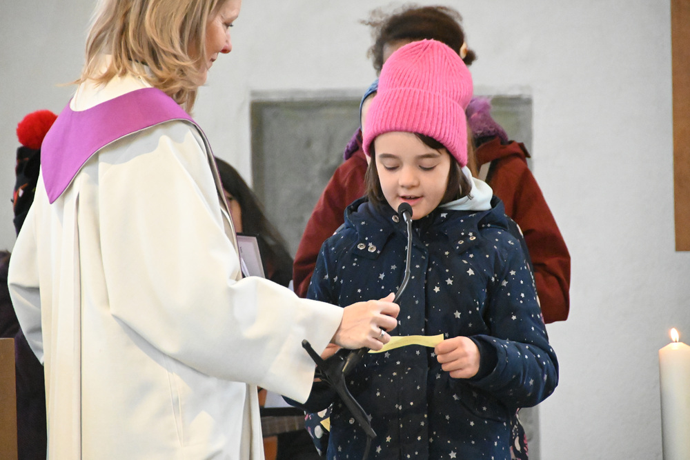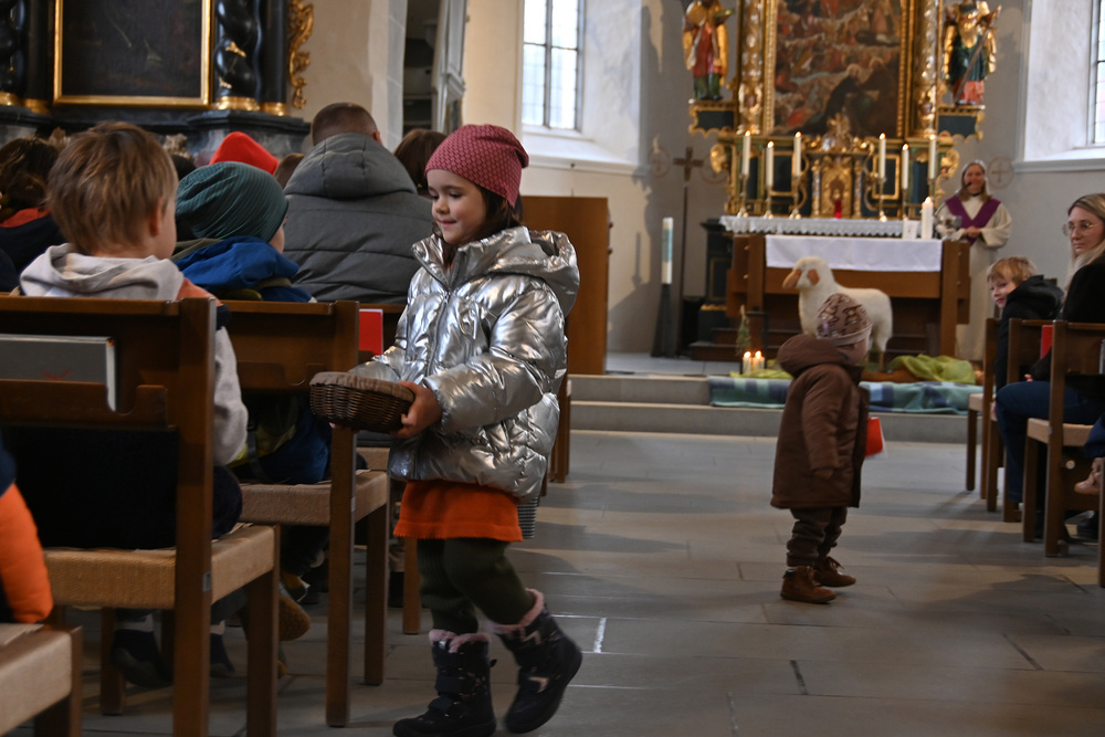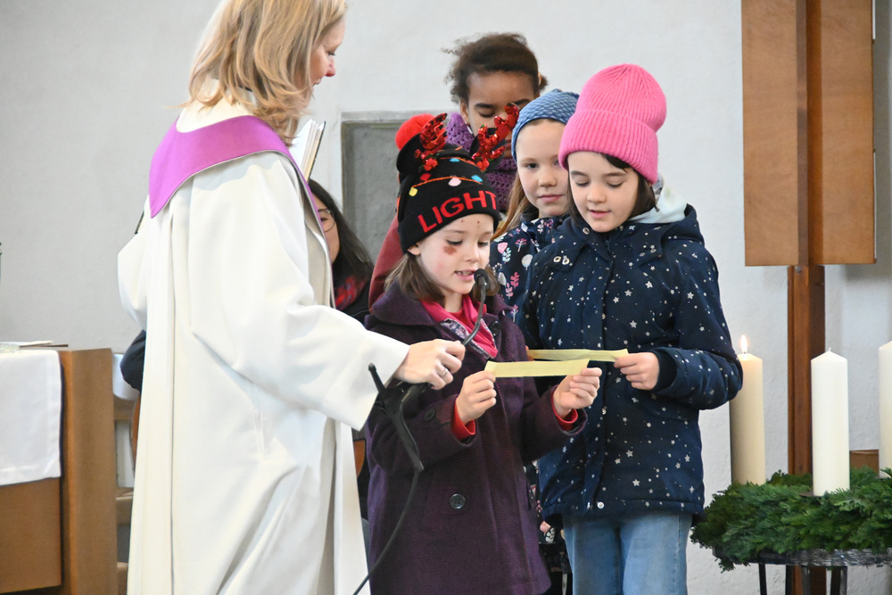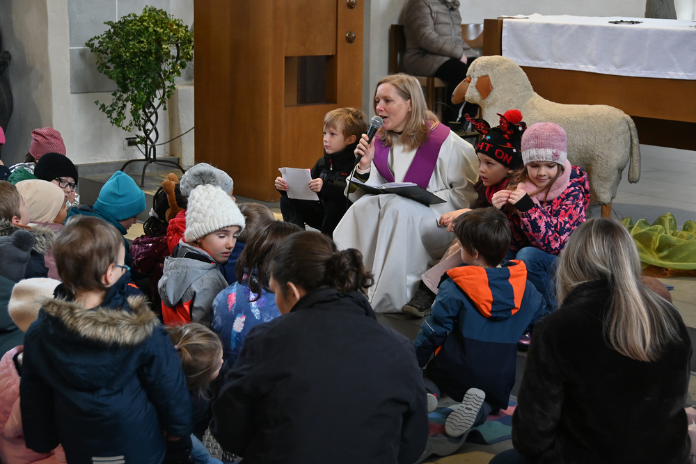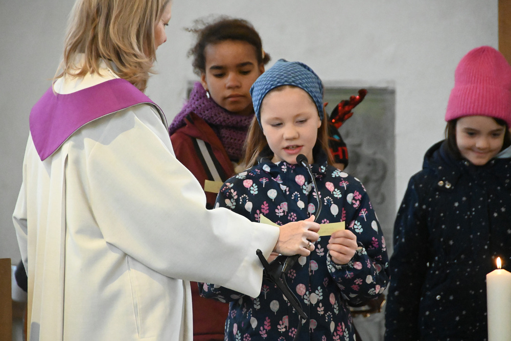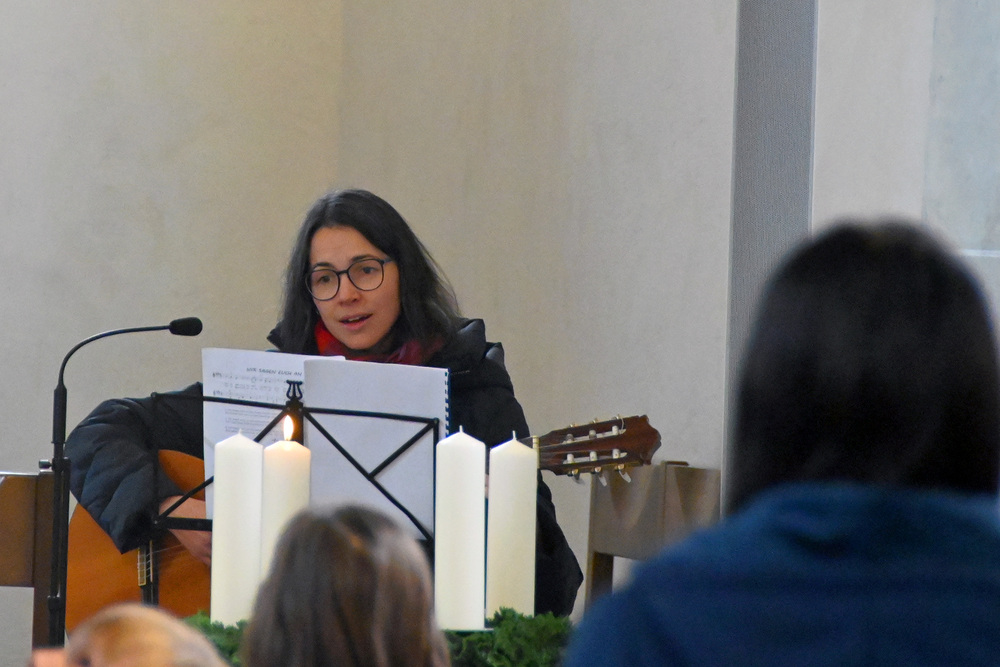 Heidi Liegel, viele Götzner kennen sich noch unter dem Namen Heidi Tschofen, führte uns durch den Gottesdienst. Heidi hat übrigens vor ca. 20 Jahren die Initiative für die Familiengottesdienste im Advent gestartet, und - wie man sieht - nachhaltig aufgebaut. Beim Gottesdienst wurde sie heute von vielen jungen Helfern und Helferinnen unterstützt. Für die musikalische Umrahmung sorgte Julia Weber mit Gesang und Gitarrenspiel. Die Frauen vom Familienmesseteam kümmern sich um alles. Das tut gut.