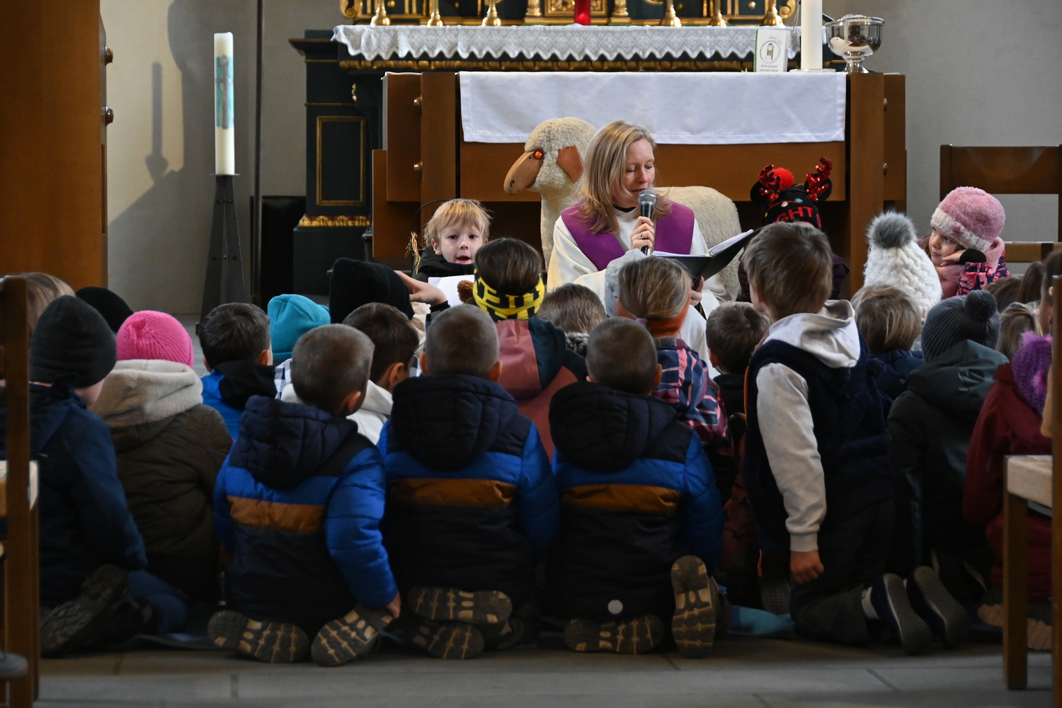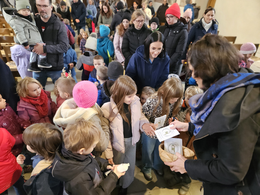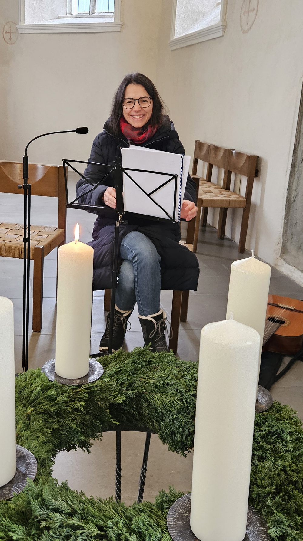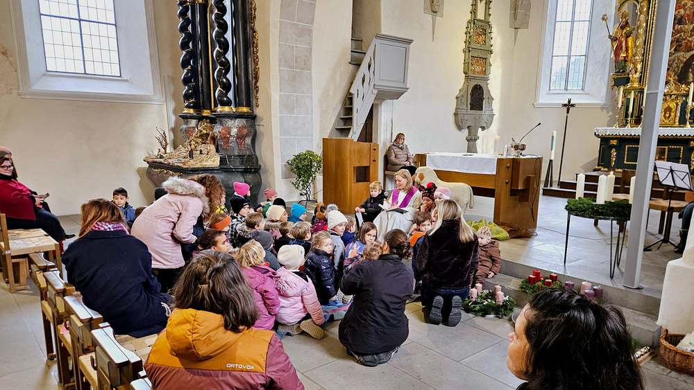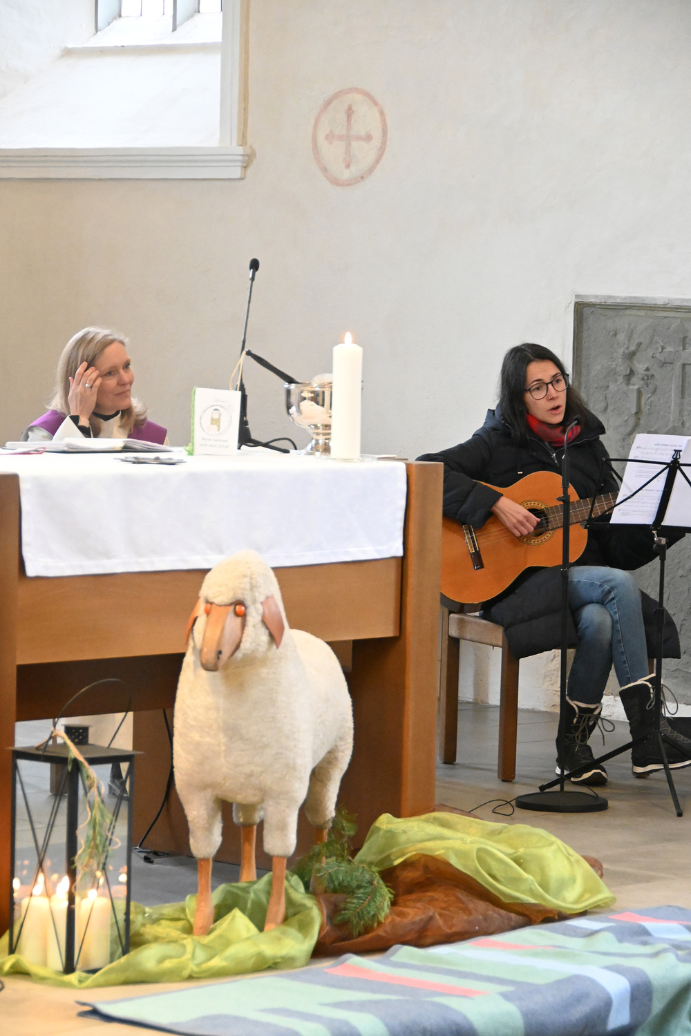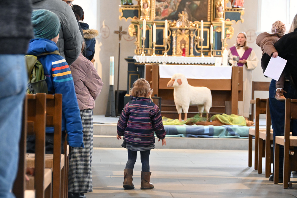 Heidi Liegel, viele Götzner kennen sich noch unter dem Namen Heidi Tschofen, führte uns durch den Gottesdienst. Heidi hat übrigens vor ca. 20 Jahren die Initiative für die Familiengottesdienste im Advent gestartet, und - wie man sieht - nachhaltig aufgebaut. Beim Gottesdienst wurde sie heute von vielen jungen Helfern und Helferinnen unterstützt. Für die musikalische Umrahmung sorgte Julia Weber mit Gesang und Gitarrenspiel. Die Frauen vom Familienmesseteam kümmern sich um alles. Das tut gut.