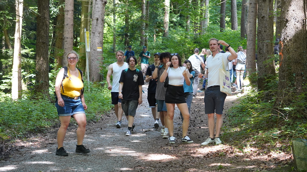 Los ging’s dieses Jahr, am 25. Juni, nach einer kurzen Einstimmung, im Carl-Lampert-Archiv in Feldkirch. Dort startete der Tag mit einer eindrucksvollen Ausstellung: „Koffer voller Erinnerungen“, eine Sammlung berührender Geschichten von jüdischen Kindern, die während des Zweiten Weltkriegs fliehen mussten. Zu sehen waren die Kofferinhalte der geflohenen Kinder und die Geschichte dazu. Keine leichte Kost, aber ein wichtiger und tiefgründiger Einstieg, der zum Nachdenken anregte. Umso angenehmer wurde es danach – und zwar mit einem feinen Frühstück im Bischofsgarten. Die perfekte Stärkung für den Fußmarsch nach Göfis. Zwischen frischen Broten und Kaffee war Zeit für einen entspannten Austausch und gemütliches Kennenlernen.