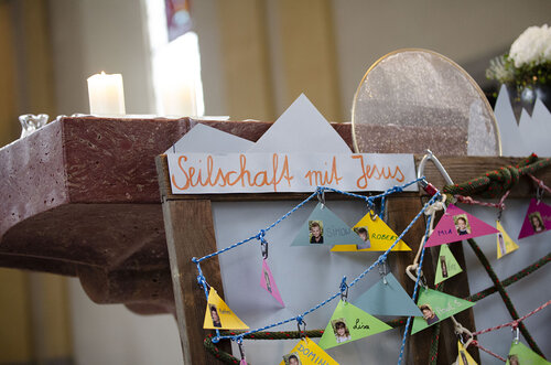 Strahlende Gesichte im Altarraum - Ministrantenaufnahme in der Pfarre Bürs